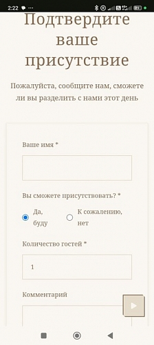 • Форма подтверждения присутствия (RSVP) на "почтовой открытке"
