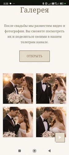 Paper — это сайт, который выглядит как страница из семейного альбома или винтажной открытки. Легкий, воздушный дизайн с эффектом настоящей бумаги создает ощущение, что вы держите в руках что-то теплое и настоящее. Многослойность, акварельные разводы, имитация вырезанных ножницами элементов и потертостей — каждая деталь продумана, чтобы подарить гостям ностальгическое настроение еще до свадьбы.