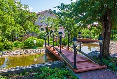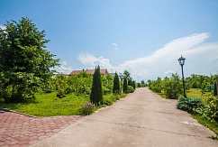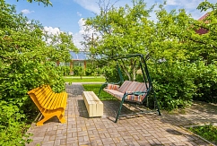 У усадьбы великолепная территория, по которой захочется гулять часами. Дорожки, подсвеченные огоньками, приведут вас к пруду с водопадом, или к бане. А если вы устанете бродить, то сможете присесть на скамейки в нашем фруктовом саду, отдохнуть в гамаке или на качелях.