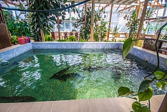 Можно снять номера на двоих, коттеджи до 20 человек, которые сдаются сроком от одних суток до месяца. В стоимость входит завтрак.